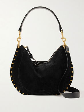 Oskan Soft Leather-Trimmed Studded Suede Shoulder Bag