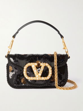 Oskan Embellished Leather-Trimmed Suede Shoulder Bag