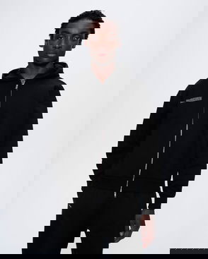 Mens 365 Heavyweight Two-Way Zip-Through Hoodie—Black