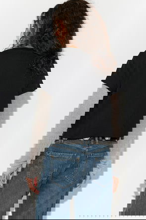 Cotton Trim Detail Short Sleeve Ruched Tshirt