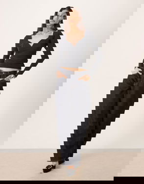 Abercrombie & Fitch Sweetheart Neck Long Sleeve Top With Built In Bra In Black