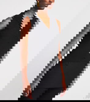 Slinky Drape Knit Power Shoulder Funnel Neck Top