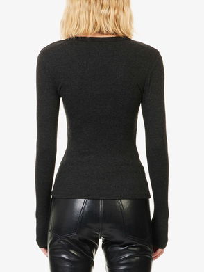 Cotton And Wool Funnel-Neck Knit Top In Black