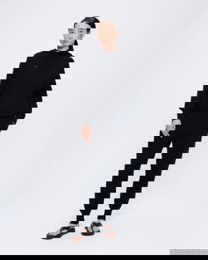 Soft Wool Rich Long Sleeve Top With High Neck And Frill Hem In Black