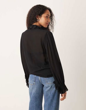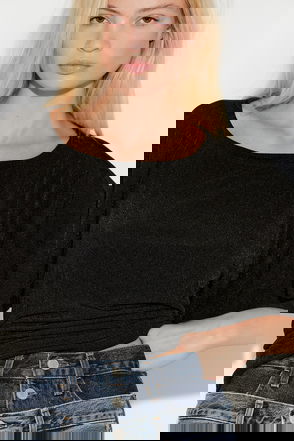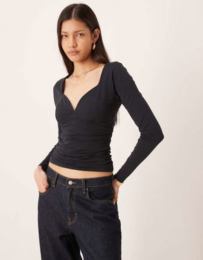 Abercrombie & Fitch Sweetheart Neck Long Sleeve Top With Built In Bra In Black