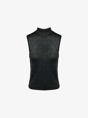 Sequin-Embellished High-Neck Shimmer-Knit Vest