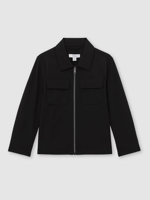 13-14 Yrs Twin-Pocket Zip-Through Overshirt In Black