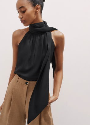Silk Am-Pm Sleeveless Top + Crystal Embellished Scarf Black