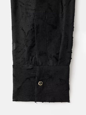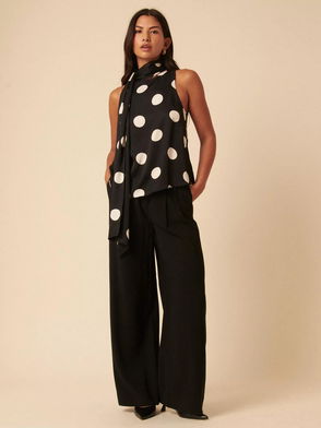 Screenplay Jacquard Puff Sleeve Ruffle Hem Open Back Contrast Bow Top In Black