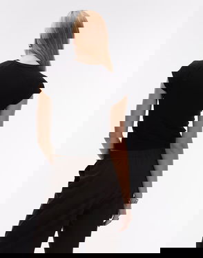 Jersey Slim Fit Crew Neck Top With Cap Sleeves In Black