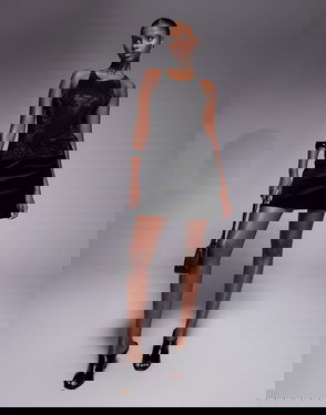 Featuring Kaia Gerber Embellished Sheer Racer Top In Black
