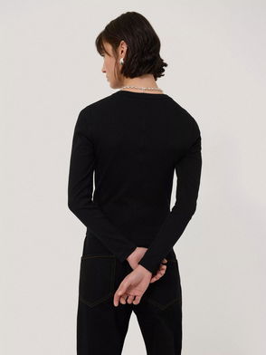 Women Micro-Rib Long Sleeve In Black Poly Knit