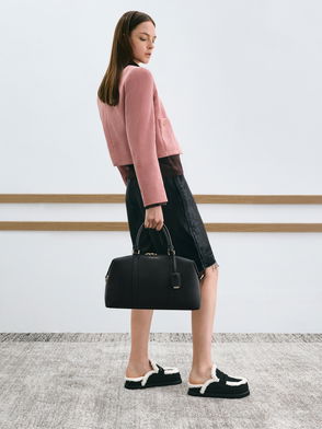 Holland Park Fabric Large Ziptop Tote Bag In Black