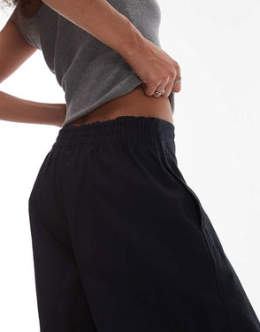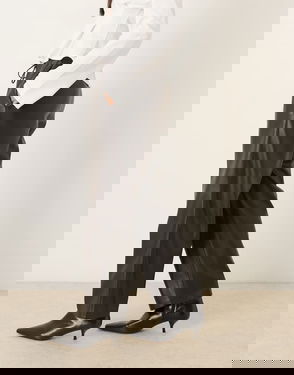 Ponte And Pu Mix Tab Detail Tailored Wide Leg Trouser