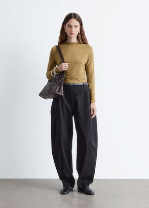 VELVET ELASTICATED STRAIGHT-LEG TROUSERS