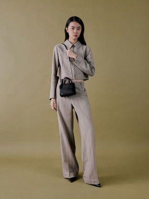 Nelly Wavy-Panel Chain-Strap Wristlet