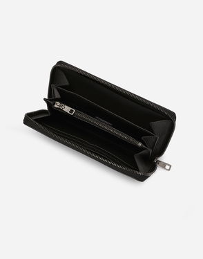 Small Zip-around Wallet In Calfskin With Raised Logo