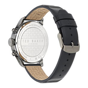 1710725 Men's Stainless Steel Leather Strap Watch, Black