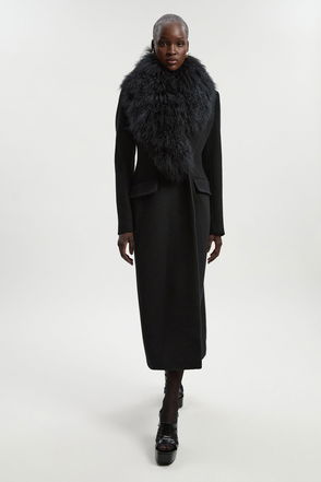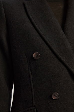 Wool Detachable Collar Tailored Double Breasted Midi Coat