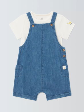 Baby Ticking Stripe Dungarees & T-Shirt Set, Blue