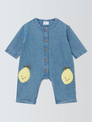 Baby Lemon Denim Romper, Blue