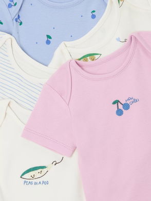 Baby Fruit Short Sleeve Bodysuits, Pack Of 5, Blue