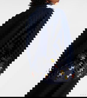 X Louis Wain Leather-trimmed Cotton Pouch