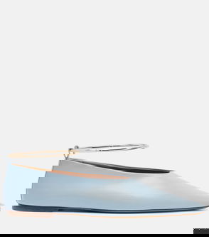 Rockstud Satin And Leather-Trimmed Denim Ballet Flats