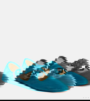 Grosgrain-Trimmed Denim Mary Jane Ballet Flats