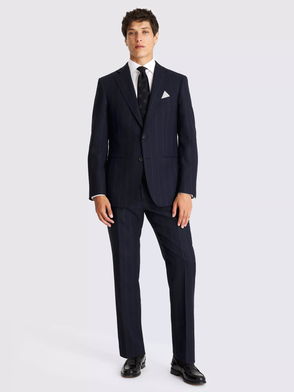 Regular Fit Chalk Stripe Wool Suit Jacket, Blue