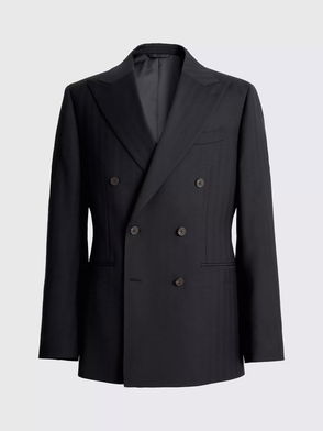 Double Breasted Tailored Fit Wool Suit Jacket, Blue