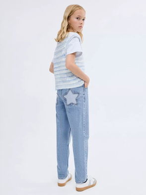 Kids' Low Rise Wide Leg Studded Jeans, Open Blue