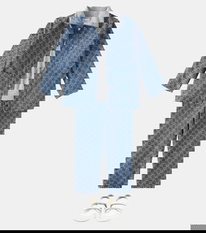 Striped Pyjamas Set Unisex Fit In Navy/Soft Blue