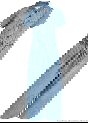Distressed Cotton-Trimmed Denim Maxi Skirt