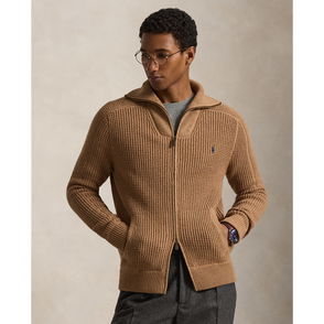Waffle-Knit Wool-Cotton Full-Zip Jumper