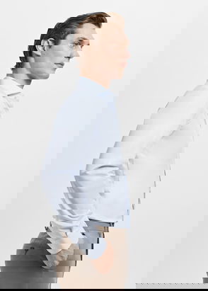 Merino Wool Long-Sleeve Polo Shirt In Steel Blue