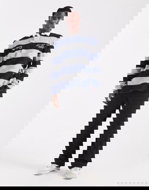 Relaxed Striped Script Logo Rugby Polo Shirt In Blue