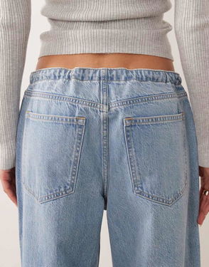 Abercrombie & Fitch Baggy Fit Jean With Drawstring Waist Detail In Light Blue Wash