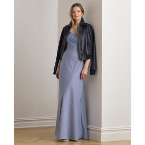 Striped Pleated Taffeta Sleeveless Gown