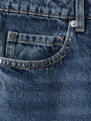 Buckle Detail Wide Leg Jeans, Mid Indigo