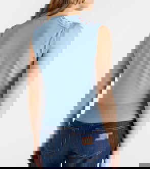 Nelly Embroidered Notch Neck T-Shirt, Blue