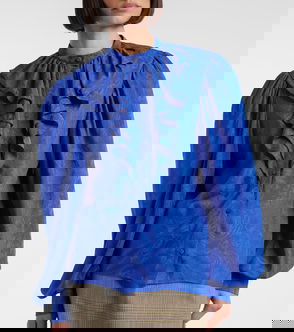 Boxy Ruched Sleeve Sweatshirt, Blue