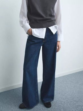 Crew Neck Side Splits Wool Rich Jumper, Blue