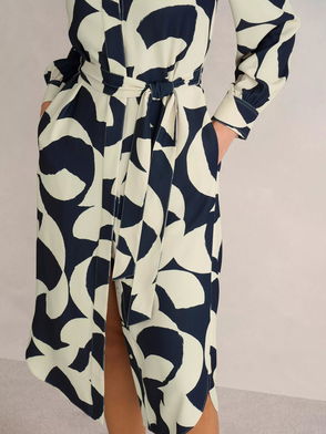 Petite Alisa Abstract Shirt Dress, Blue/Sandstone
