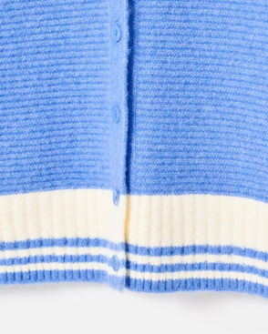 Blue & Cream Striped Crew Neck Knitted Cardigan