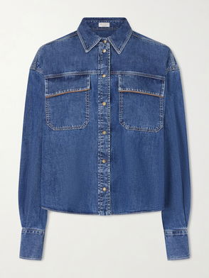 Striped Rhinestone-Embellished Cotton Shirt