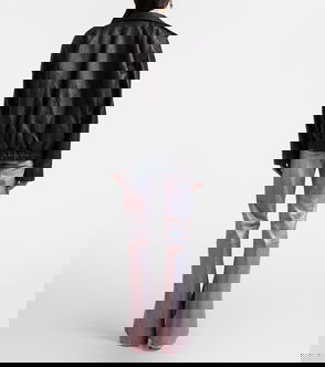 Collared Elasticated-Hem Denim Bomber Jacket