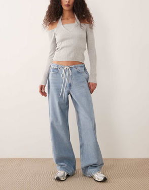 Abercrombie & Fitch Baggy Fit Jean With Drawstring Waist Detail In Light Blue Wash