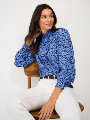 Harmony Floral Frill Top, Dark Blue