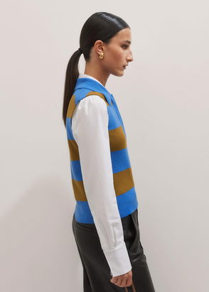 Merino Cashmere Rugby Stripe Vest Provence Blue/Tapenade